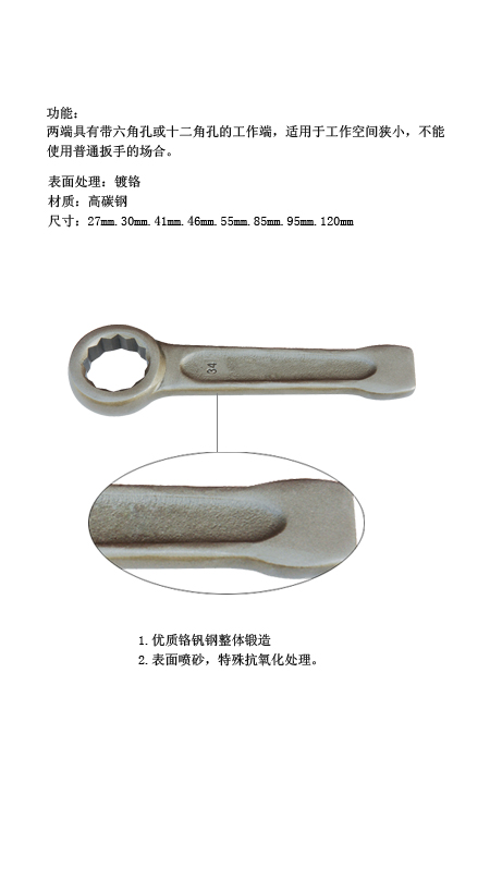 1.優(yōu)質(zhì)鉻釩鋼整體鍛造 2.表面噴砂,特殊抗氧化處理。
