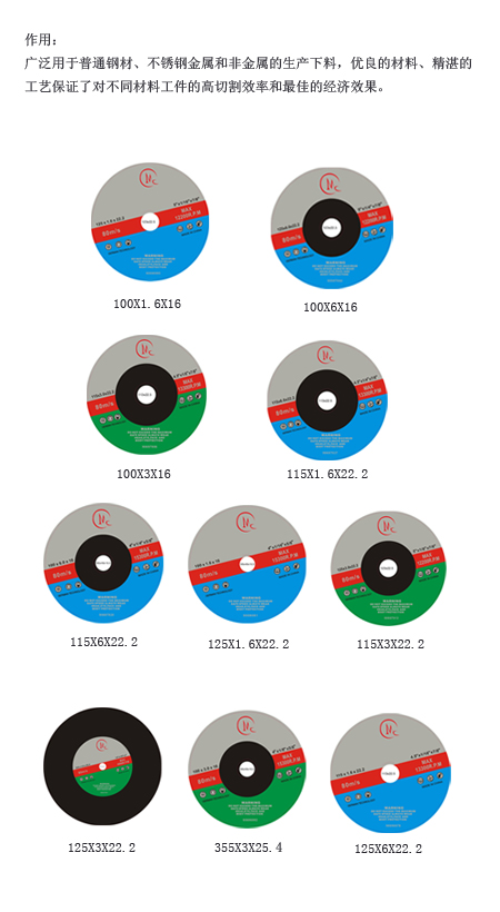 粘結(jié)劑:全樹脂 磨料:棕剛玉 輔助材料:玻璃纖維