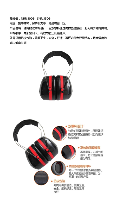 外周采用仿皮包邊,佩戴衛(wèi)生,安全,舒適,耳杯內(nèi)部為雙層結(jié)構(gòu),最大限度的減少低音共振。